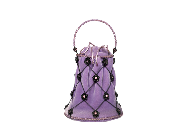 Velvet, blackened brass chain and roses with beaded handle and Swarovski rhinestones, lavender (other colors available)