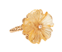 Antique Carved Citrine Flower Diamond Ring Mounted on a Filigree Heart Frame