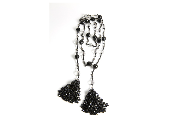 Black & Crystal Swarovski Rhinestones 2 Tassels Lariat