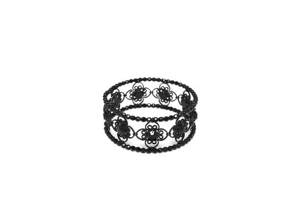 Blackened Brass, Swarovski Rhinestones, Black Glass Beads