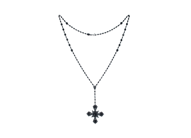 Blackened Brass, Swarowski Rhinestones, Black Glass Beads