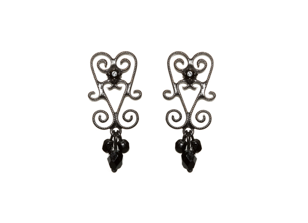Black Beaded Heart Earrings