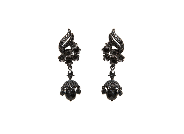 Black Flowers Swarovski Rhinestones Beaded Filigree Cap Earrings