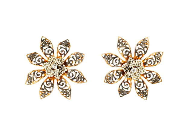 8 Petal Filigree Flower w/ Diamond Rose Earrings