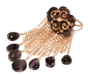 Brown Mother of Pearl Flower Chain and Drops Ring