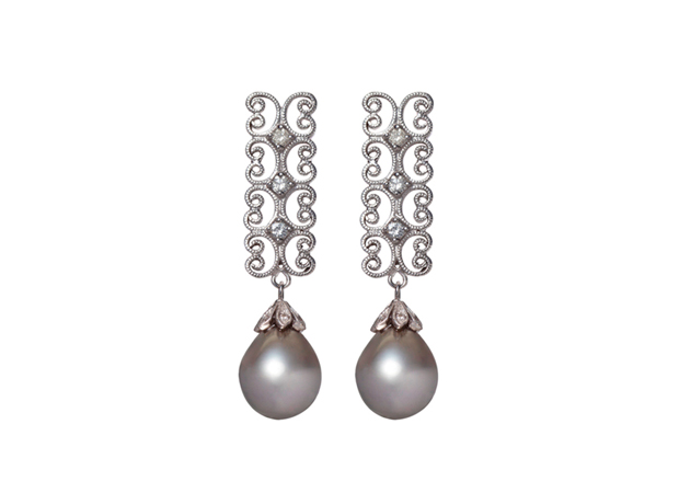 8 Hearts Tahitian Pearl Diamond Earrings