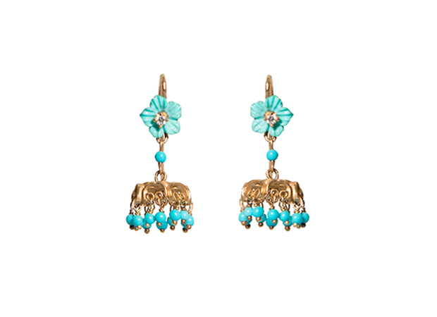 6mm Turquoise Flower Earrings with Beaded Heart Cap 6TFBHCE 14kt yellow gold $ 400