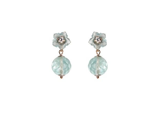 6mm Blue Topaz Flower Round Drop Diamond Earrings 6BTFRDDE 14kt white gold $ 250