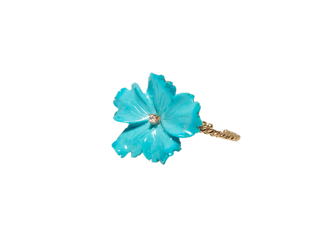 Turquoise Flower Diamond Ring TFDR 14kt yellow gold 0.8" wide $ 450