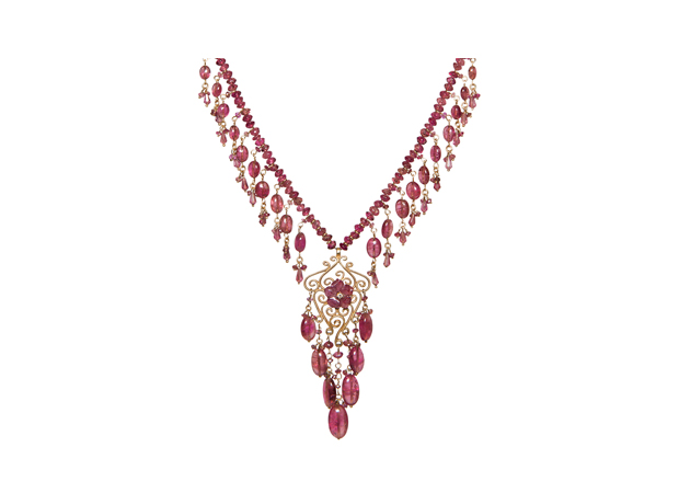 Pink Tourmaline Flower Drops Necklace